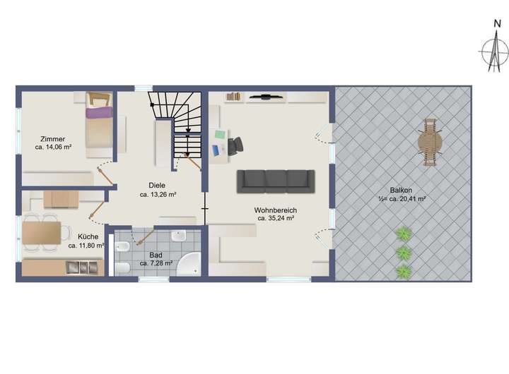 Nebenkosten: ca. 2 % Notar- und Gerichtskosten sowie 5,5 % gesetzlicher Grunderwerbsteuer