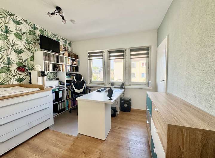 Das Obergeschoss beherbergt ein Schlafzimmer sowie ein flexibel nutzbares Büro- oder Kinderzimmer. Im Dachgeschoss finden Sie zwei weitere, gut geschnittene Zimmer, die sich ideal als Kinder-, Arbeits- oder Hobbyzimmer eignen. Insgesamt stehen Ihnen somit 5 Zimmer, darunter 3 Schlafzimmer, sowie 2 Badezimmer zur Verfügung.