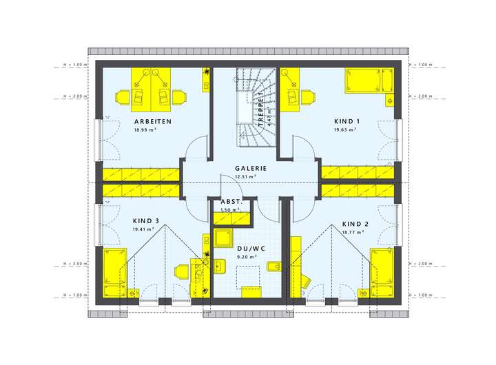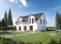 Dieses beeindruckende Einfamilienhaus im klassischen Satteldach-Stil wird nach deinen individuellen Wünschen und Vorstellungen umgesetzt. Mit einer großzügigen Wohnfläche von 210 Quadratmetern, verteilt auf zwei Etagen, bietet es genügend Platz für die ganze Familie. Die zwei Zwerchgiebel sorgen nicht nur für eine elegante Optik, sondern schaffen auch eine beeindruckende Raumhöhe im Obergeschoss. Hier erlebst du ein lichtdurchflutetes Wohnambiente, das zum Verweilen und Entspannen einlädt.