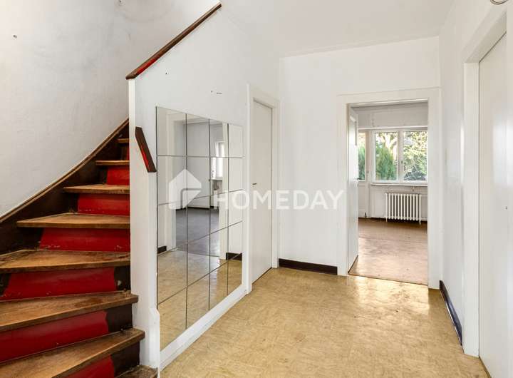Das Haus wurde im Jahr 1934 in massiver Bauweise errichtet und verfügt über eine Wohnfläche von circa 118 Quadratmetern, die sich auf insgesamt acht Zimmer verteilt. Ergänzt wird das Raumangebot durch einen vollunterkellerten Bereich, der zusätzliche Nutzflächen bietet. Teile des Kellers wurden in der Vergangenheit gewerblich genutzt, unter anderem als zahntechnisches Labor, was interessante Nutzungsmöglichkeiten eröffnet. Insgesamt ist ein Modernisierungsstau vorhanden, sodass sich hier die Chance bietet, das Haus nach eigenen Vorstellungen zu gestalten und zeitgemäß weiterzuentwickeln.