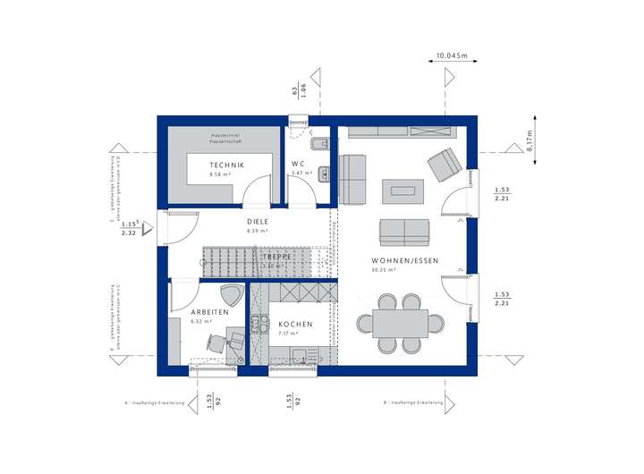 Das Angebot sieht eine halbfertige Ausbaustufe vor, bei der wir den Rohbau sowie den technischen Innenausbau übernehmen. Sie haben die Möglichkeit, Böden, Malerarbeiten und Sanitärinstallationen selbst zu gestalten, was Ihnen nicht nur Freiheit in der Gestaltung gibt, sondern auch kosteneffektiv ist. Das Haus erfüllt die Anforderungen des staatlichen Qualitätssiegels QNG, was bedeutet, dass Sie nicht nur einen hohen Standard an Energieeffizienz und Wohngesundheit genießen, sondern auch von möglichen Förderungen profitieren können. So wird der Bauablauf für Sie so komfortabel wie möglich, während Sie gleichzeitig aktiv an der Gestaltung Ihres neuen Zuhauses mitwirken können.