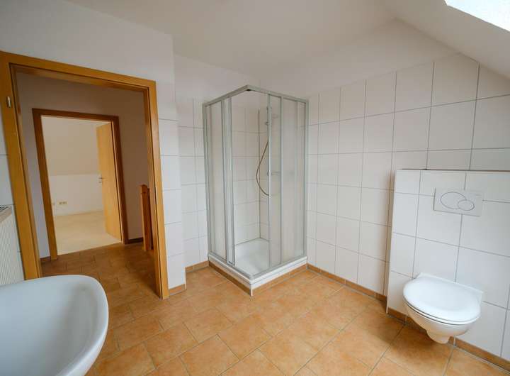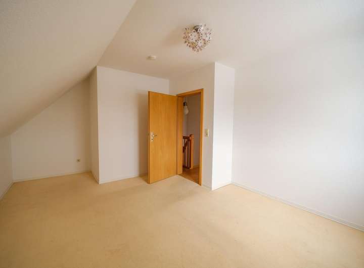 Das Dachgeschoss verfügt über ein Schlafzimmer, ein weiteres Zimmer (z. B. Arbeits- oder Gästezimmer) sowie ein Badezimmer mit Tageslicht und Dusche.