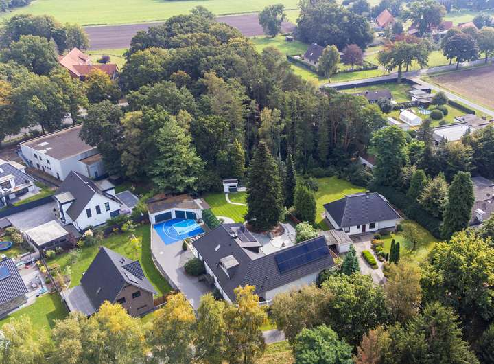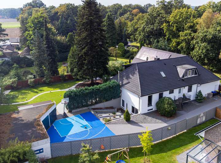 Dieses hochwertig ausgestattete Einfamilienhaus vereint großzügigen Wohnkomfort mit modernen Annehmlichkeiten auf rund 438 m² Wohnfläche und zusätzlichen 80,95 m² Nutzfläche. Die Immobilie ist ideal für Familien und bietet eine Vielzahl an Extras, die kaum Wünsche offenlassen. Auf einem beeindruckenden Grundstück von 2.252 m² genießen Sie Privatsphäre, eine gehobene Ausstattung und sogar ein kleines Waldstück zur vielseitigen Nutzung.