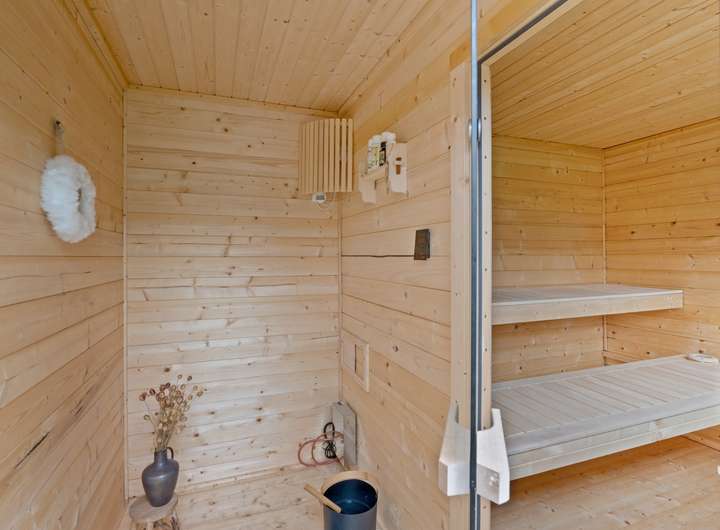 + Finnische Sauna im Garten mit Blick ins Grüne