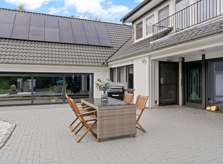 Das Anwesen bietet zahlreiche praktische Extras wie zwei Kellerbereiche, eine Waschküche, Abstellräume und eine Poolreinigungsanlage im Keller. Das elektrische Einfahrtstor und die lange Auffahrt sorgen für Sicherheit und Privatsphäre. Das Mobiliar kann nach Absprache übernommen werden, sodass das Haus fast einzugsbereit ist.