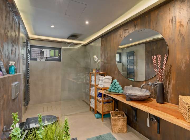 + Badezimmer im EG mit Regenwalddusche und fugenlosem Bodenbelag
