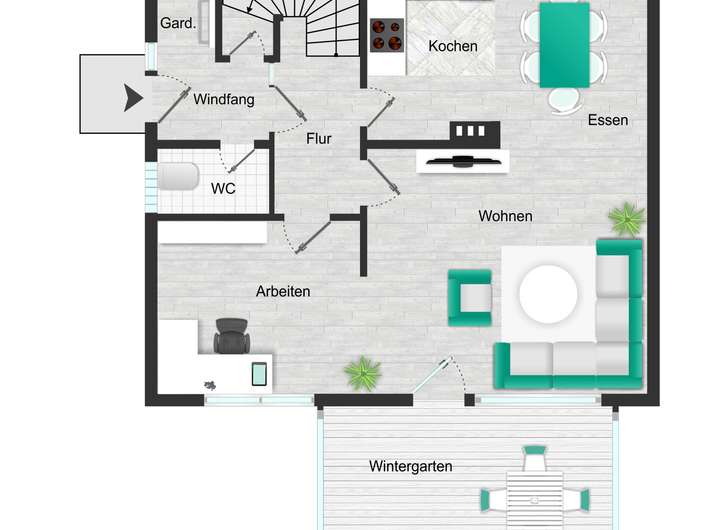 • Windfang und großzügiger Flur