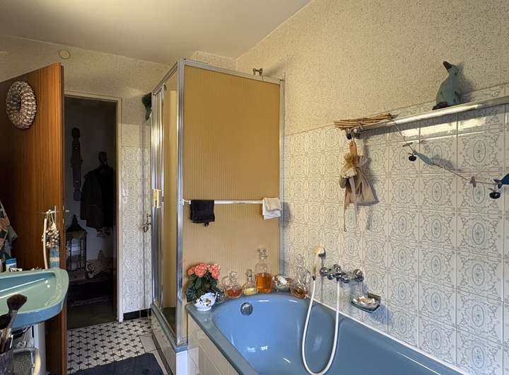 Diese Ebene verfügt über ein Badezimmer mit Dusche und Badewanne.