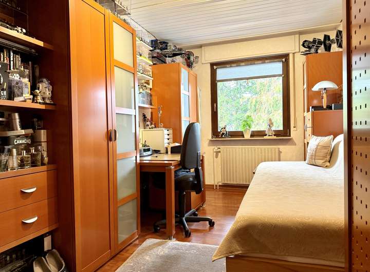 Das Obergeschoss bietet einen Flurbereich, 2 Kinder- oder Arbeitszimmer, ein Tageslichtbad sowie ein großzügiges Elternschlafzimmer. Am Elternschlafzimmer angrenzend befindet sich die gemütliche Loggia mit Süd-West-Ausrichtung.