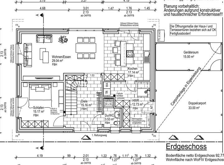 Der Garten bietet ausreichend Platz zum Entspannen, Spielen oder für gesellige Abende auf der Terrasse. Das Doppelcarport ermöglicht komfortables, wettergeschütztes Parken direkt am Haus.