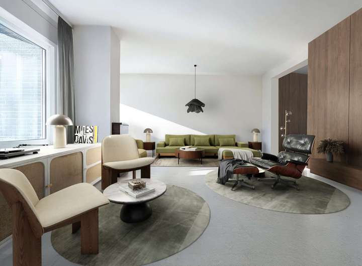 Diese architektonische Haltung zeigt sich besonders in der klar gegliederten Raumstruktur, den fließenden Übergängen und der materialbetonten Gestaltung, die die Prinzipien der Mid-Century-Architektur bis heute eindrucksvoll erlebbar machen...
