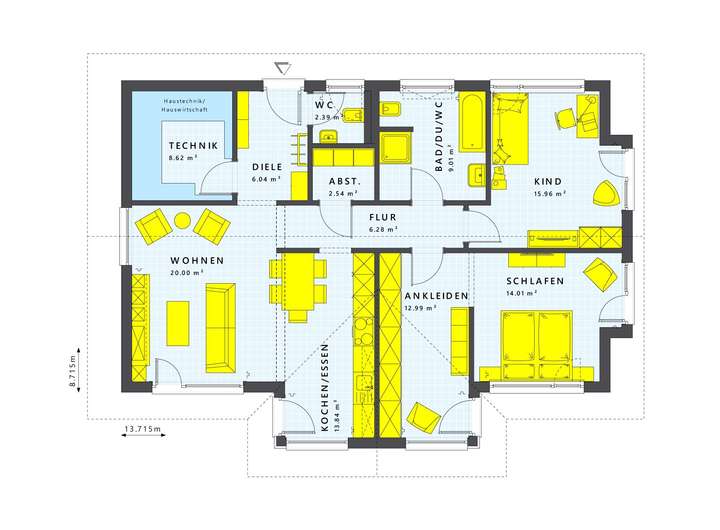 Dein zukünftiges Zuhause ist ein durchdachter Bungalow mit klassischem Satteldach, das sowohl Eleganz als auch Funktionalität ausstrahlt. Mit einer großzügigen Wohnfläche von 100,72 m² und einem Grundstück von 993 m² bietet dieses Projekthaus ausreichend Platz für deine individuellen Wünsche. Der integrierte Giebelerker im Dach sorgt für mehr Raum im Kinder- und Schlafzimmer, während das Querhaus mit Satteldach das Ankleidezimmer und die Küchenzeile erweitert. Hier kannst du deinen Alltag perfekt gestalten und die Übergänge zur Terrasse fließend genießen. LivingHaus ermöglicht es dir, alle Details deines Hauses nach deinen Vorstellungen zu gestalten, damit dein Zuhause so einzigartig wird wie du selbst. Darüber hinaus bietet LivingHaus eine Reihe von wertvollen Dienstleistungen, die dir den Bauprozess erleichtern und deine Träume wahr werden lassen. Die hochwertige Traumküche wird genau auf deinen Grundriss abgestimmt und kommt mit modernster Technik und cleveren Stauraumlösungen - pünktlich zum Einzug. Mit dem Living Haus Bau-Cockpit behältst du stets den Überblick über dein Projekt und kannst alles bequem digital verwalten. I-KON - Intelligentes Bauen garantiert, dass dein Haus energieeffizient und umweltfreundlich ist, während das Zuhause-Darlehen dir ermöglicht, dein Traumhaus zu einem besonders günstigen Zinssatz zu finanzieren. Das Zuhause-Paket sorgt dafür, dass dein Haus mit einer hochwertigen Grundausstattung versehen ist, und das DIY-Ausbau-Coaching gibt dir die Möglichkeit, deinen Innenausbau selbst in die Hand zu nehmen. Dieser Bungalow vereint alles, was du dir von einem modernen Zuhause wünschst.