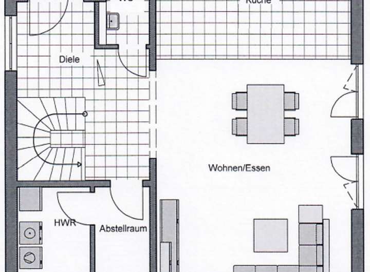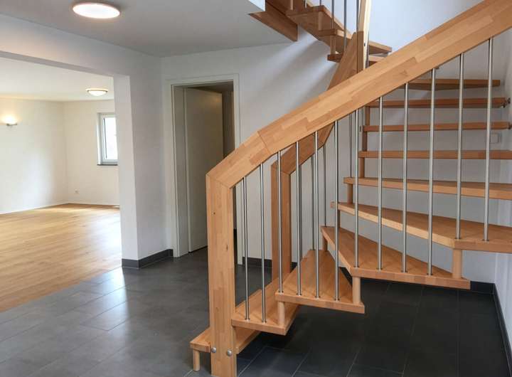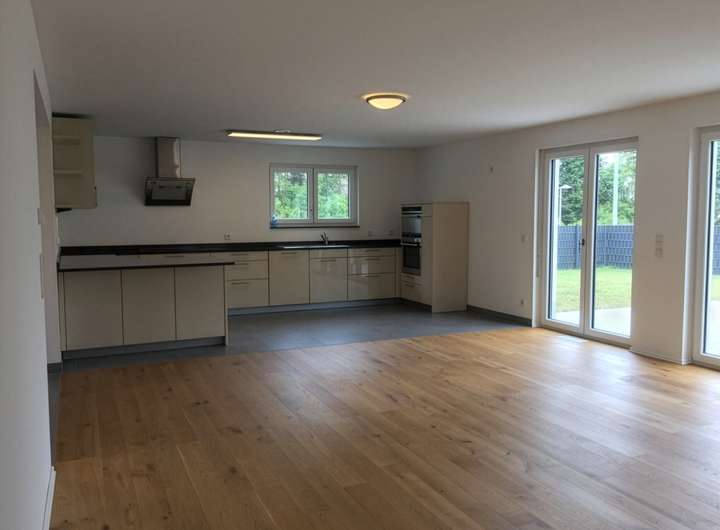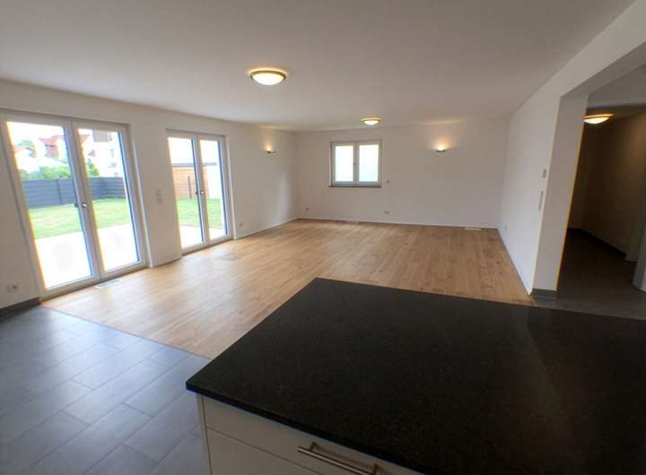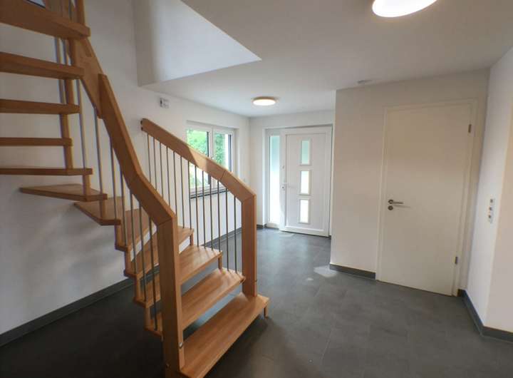 Bereits beim Betreten spürt man die Großzügigkeit und Helligkeit des Hauses. Der offen gestaltete Eingangs-, Wohn- und Essbereich schafft ein harmonisches Wohngefühl. Eine große Terrasse lädt zum Entspannen im Grünen ein.