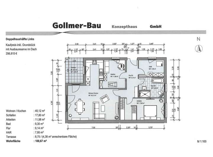 - Variante 1 mit 101 m² Wfl. und 3 Zimmern KP 296.815,- Euro inkl. Grdst. (ca. 366 m²)