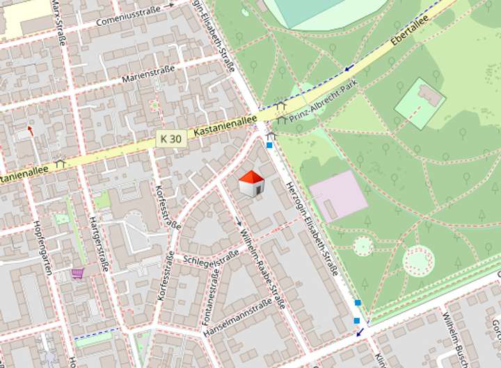 Der Prinz-Albrecht-Park, einer der größten und schönsten Stadtparks Braunschweigs, liegt direkt hinter dem Grundstück und lädt mit weitläufigen Grünflächen, altem Baumbestand und Spazierwegen zum Verweilen und Entspannen ein.