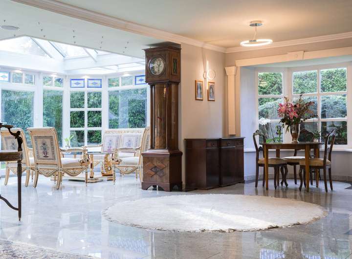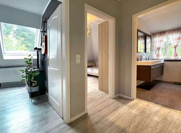 Dieses exklusive Ein- bis Zweifamilienhaus befindet sich in der Gemeinde Lemsahl-Mellingstedt bei Hamburg. Das Haus verfügt über ca. 276 m², welche sich auf 10 Zimmer und einen Wintergarten verteilen. Im Erdgeschoss des Hauses befinden sich neben dem großflächigen Wohn-/Koch- und Essbereich ein weiteres Wohnzimmer mit einem Holzkamin und ein Arbeitszimmer. An dem Wohn- und Essbereich schließt der lichtdurchfluteter Wintergarten an, welcher von dort aus zu betreten ist. Im Obergeschoss befinden sich drei Schlafzimmer und zwei Badezimmer. Das erste Schlafzimmer verfügt über ein Bad en Suite mit Tageslicht, Badewanne und Dusche, eine Ankleide sowie einen Balkon. Des Weiteren verfügt das Haus über ein erst 2021 ausgebautes Souterrain, wo sich ein weiteres Bad und vier weitere Zimmer befinden. Das ausgebaute Souterrain könnte auch als einzelne Wohnung genutzt werden, da dieses über einen eigenen separaten Zugang verfügt. Die Räume in dem Haus sind mit einem hochwertigem Granit- & Parkettboden ausgelegt und verfügen über eine Fußbodenheizung. Zudem ist das Haus mit einer hochwertigen Alarmanlage im Wert von ca. 18.000€ ausgestattet. Außen befindet sich eine mit Granitstein gepflasterte Terrasse und ein Garten, welcher mit einem computergesteuerten Bewässerungssystemen versehen ist. Des Weiteren befindet sich auf dem Grundstück ein großes Gartenhaus sowie drei Außenstellplätze mit einem Elektro-Anschluss für Kfz. Auf der Auffahrt des Grundstücks befindet sich ein schmiedeeisernen Tor, das mit einer Videogegensprechanlage ausgestattet ist.