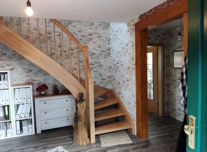Niedrigenergiehaus KfW 40+ zu verkaufen! Energieklasse A+. Freistehendes EFH in Holzrahmenbauweise mit Pfahlgründung gebaut. Ökologische Zellulosedämmung. 618 qm Grundstück, Bj. 2018. 139 qm, 3,5 Zimmer, Erdwärmeheizung (Geothermie), zentrale Lüftungsanlage mit Wärmerückgewinnung, Warmwasserspeicher. 8,5 kWp PV-Anlage mit 10 kWp-Speicher und Einspeisevertrag bis 2039, Fußbodenheizung, barrierefrei. Einliegerwohnung möglich. Carport für Auto + Motorrad, Wallbox ist vorgesehen. Zwei weitere Stellplätze. 1 überdachte Terrasse, 2 weitere Terrassen, zwei Gartenhäuser. Toller Garten. Von privat. Kaufpreis 499.900 VB. Exposé auf Anfrage.