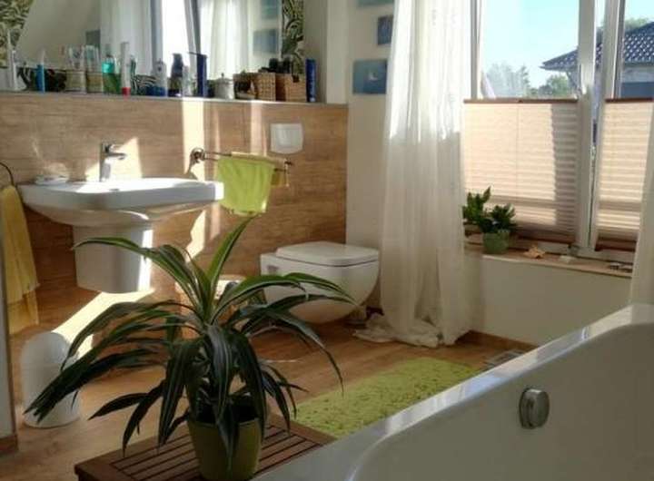 Fußbodenheizung und wohnliche Fliesen im gesamten Haus (u.a. in Holzoptik)
