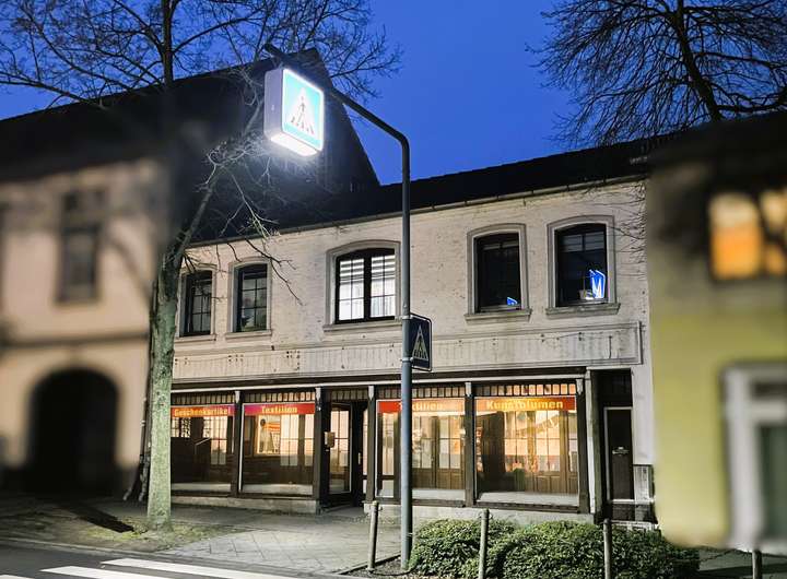Der an vergangene Zeiten erinnernde Altbau aus den 30er/ 40er Jahren unterliegt keinem Denkmalschutz, sollte sich jedoch bei Veränderungen im Fassadenbereich an die Umgebung anpassen. Zur Integration der hiesigen Fensterfront als Wohnfläche im Eingangsbereich liegt bereits eine Baugenehmigung vor. Auf einem der Fotos sind die geplanten Fassadenänderungen einzusehen.