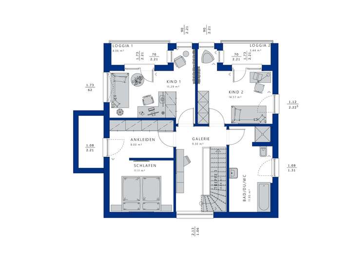 Grundrissbeispiel Obergeschoss Grundrissbeispiel Obergeschoss >