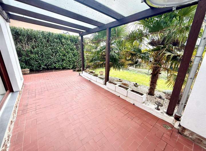 Ca. 100 m² Sonnenterrasse mit Blick in den nicht einsehbaren Garten
