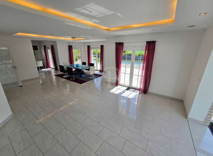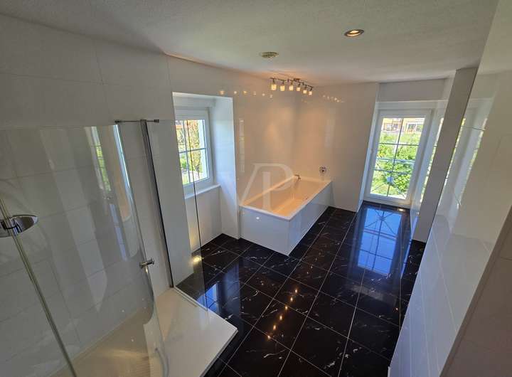 Zum Verkauf steht hier eine junge repräsentative Landhausvilla in bezugsfertigem renovierten Bestzustand, auf einem über 3.600 m² großen parkähnlichen Eigentumsgrundstück mit Schwimmteich.