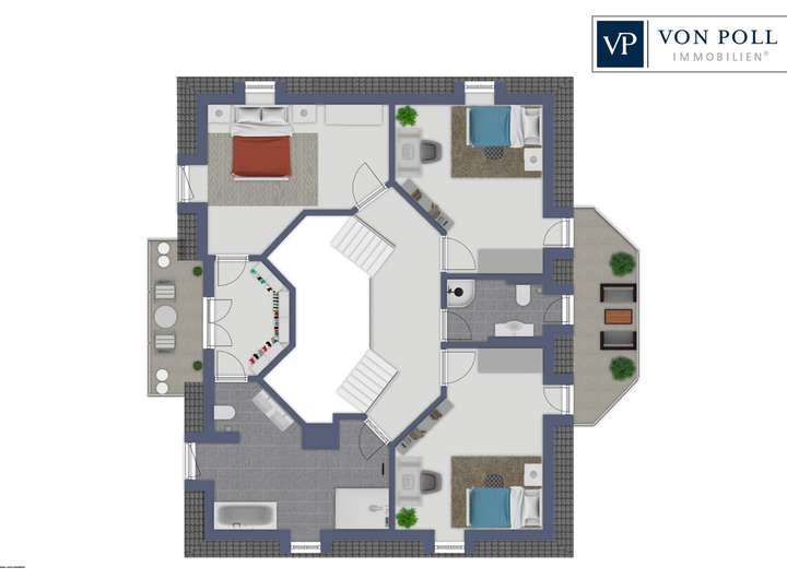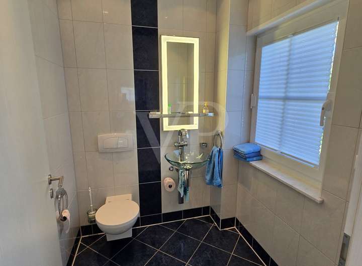 Die durchdachte Aufteilung, die großzügigen Räume mit ihrer Helligkeit und die vielen kleinen zusätzlichen Komfortfeatures muss man im Bild erleben und lassen sich mit Worten kaum adäquat beschreiben, also sprechen Sie uns bitte an, für Ihren persönlichen Zugang zu unserem exklusiven 360° Rundgang durch Geschosse und die Außenanlagen.