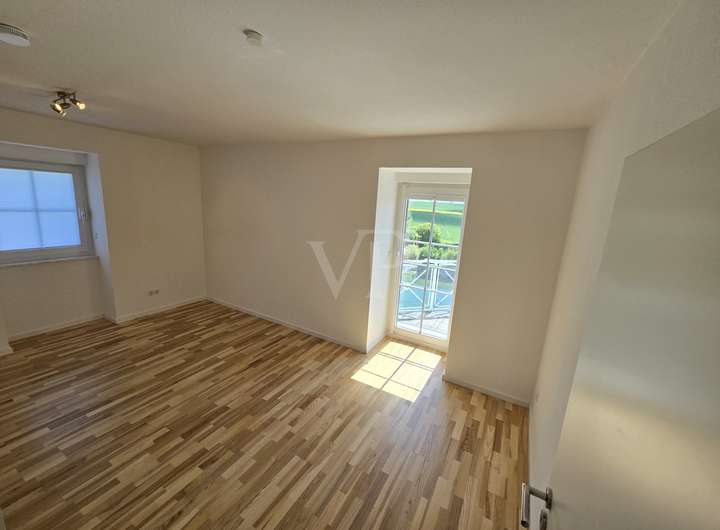 Im Obergeschoss finden wir sowohl nach Norden als auch nach Süden ausgerichtet jeweils einen Balkon, im Erdgeschoss erstreckt sich die große nach Süden ausgerichtete Terrasse vor einem weiteren Highlight: Dem Schwimmteich mit rund 200 m² Wasserfläche mit Pumpenhaus und PV-Anlage (14 Panels).