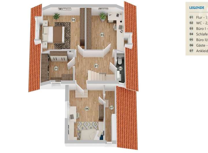 Drei individuell nutzbare Räume im DG bieten den idealen Platz für die Familie, Home-Office und oder Hobby
