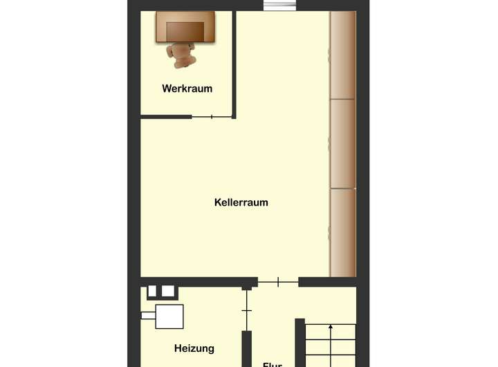 Dieses Reihenhaus bietet gut 65 m² Wohnfläche verteilt auf 3 Zimmer, Küche, Flure und Terrasse. Hinzu kommen als Abstellfläche noch der Spitzboden sowie der Vollkeller.