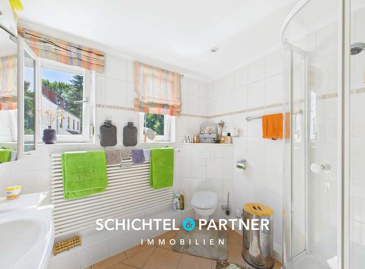 - Weiß geflieste Tageslicht-Vollbäder