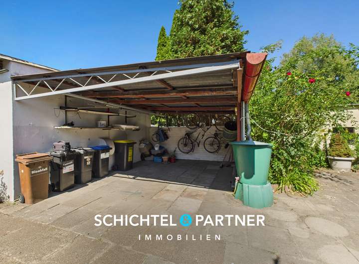 - Lange Einfahrt mit 2 Garagenstellplätzen sowie einem Carport & separater Werkstatt