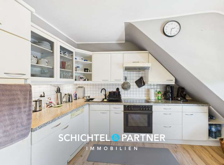 Das Dachgeschoss bietet durch seine flexible Raumaufteilung mit zwei Wohnbereichen, zwei Küchen, wovon derzeit eine als weiterer Wohnraum genutzt wird und zwei Tageslichtbädern besondere Nutzungsmöglichkeiten – etwa als separate Wohneinheit oder WG. Dank der vorhandenen Anschlüsse und der intelligenten Grundrissstruktur lässt sich hier problemlos ein autarkes Dachapartment schaffen.
