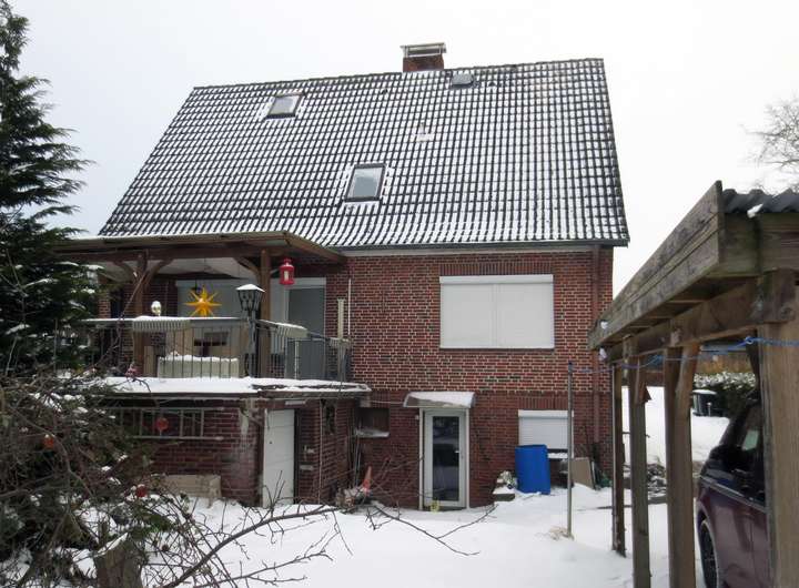 Das 1969 erbaute Rotklinker-Giebel-Haus überzeugt mit seiner soliden Substanz und einem Grundriss, der viele Möglichkeiten eröffnet. Auf beiden Etagen befinden sich aktuell je ein Wohnzimmer, eine Küche, ein Schlafzimmer, ein halbes Zimmer und ein Badezimmer mit hübschen Original-Fliesen.