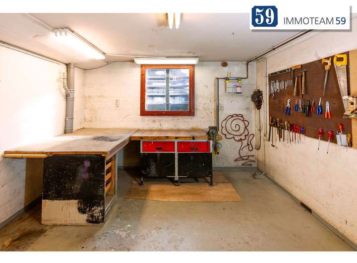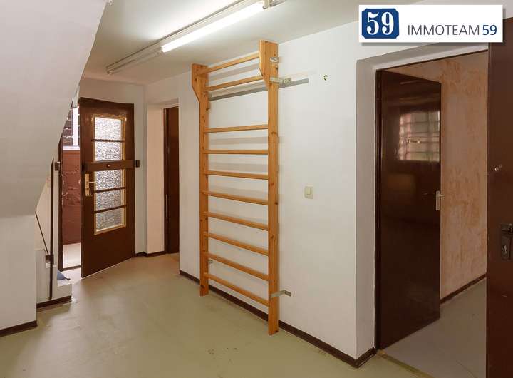 Im Kellergeschoß, welches man von der Diele aus erreicht, befinden sich die Waschküche mit direkter Anbindung zu einer Außentreppe in den Garten sowie 3 weitere große Räume, die zum Werken, Spielen oder als Lagerräume genutzt werden können.