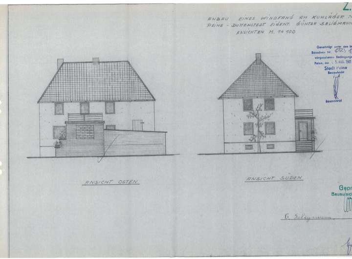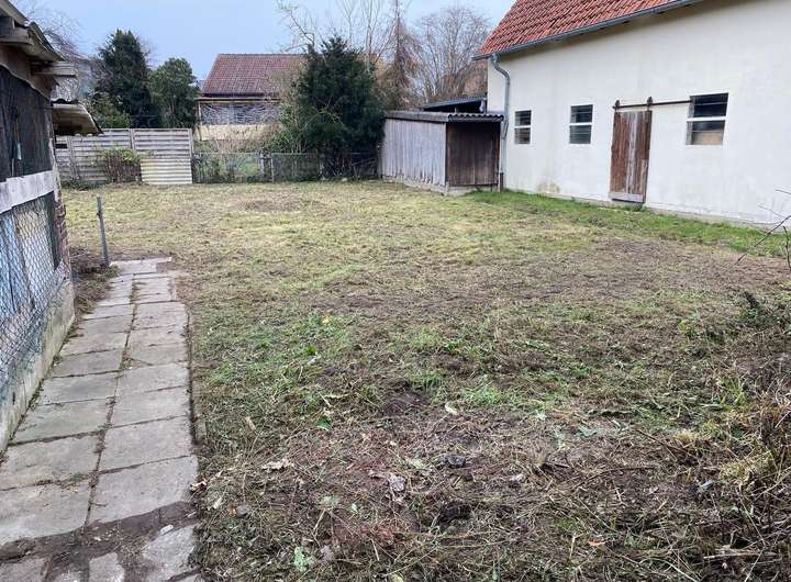 - mit Anbau (z.Zt. als Werkstatt), dahinter ehemaliger Hühnerstall