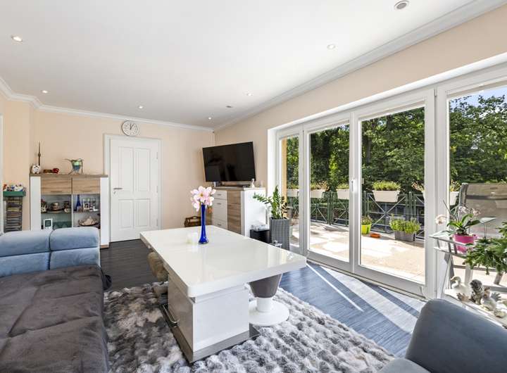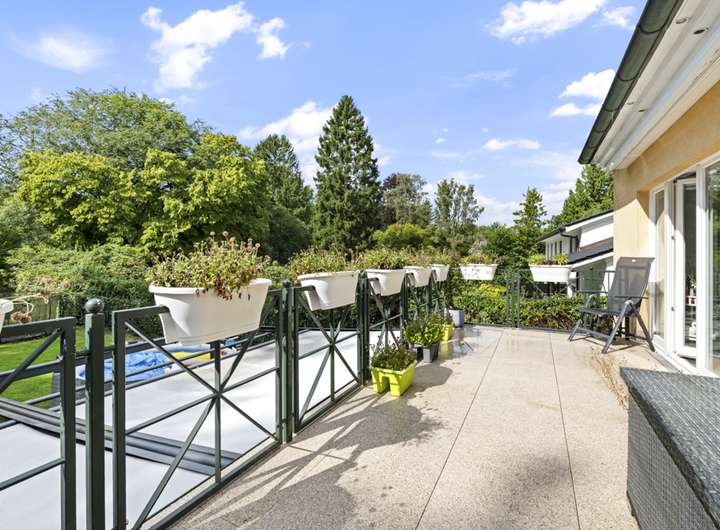 Die lichtdurchfluteten Räume sind mit großen, meist bodentiefen Fenstern ausgestattet, die einen herrlichen Blick auf den gepflegten Garten bieten.