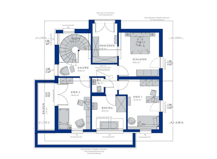 Malerarbeiten, Bodenbeläge, Innentüren und Sanitärobjekte fehlen bewusst, um Ihnen maximale Gestaltungsfreiheit zu lassen. Diese Gewerke können auf Wunsch selbstverständlich ergänzt werden.