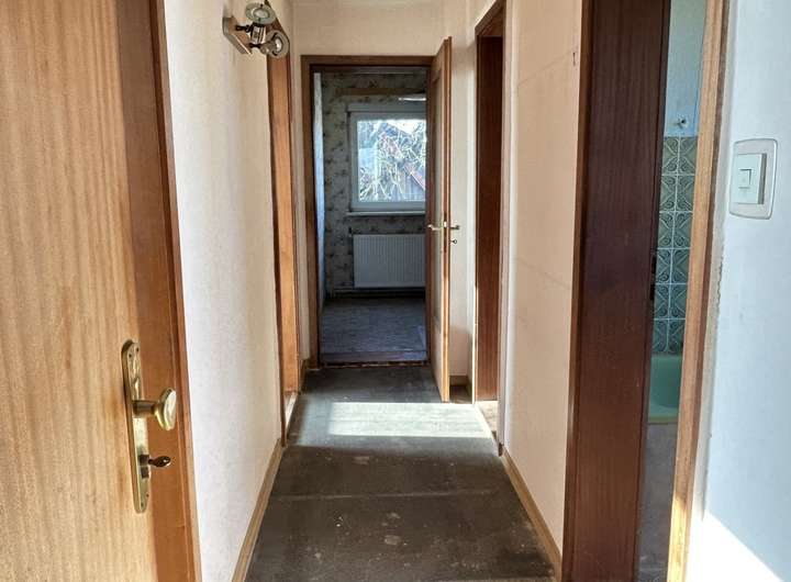 Die Immobilie ist stark sanierungs- und renovierungsbedürftig, z.B. bei der Elektrik und den Bädern, und bedarf einer energetischen Ertüchtigung - insbesondere die Erneuerung der Fenster und Heizung für eine optimale Wärmeeffizienz.