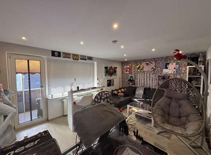 Ein besonderes Highlight stellt das ausgebaute Studio dar, das derzeit als Einliegerwohnung genutzt wird und über ca. 43 m² Wohnfläche verfügt. Dieser Bereich ist aufgeteilt in einen Wohnbereich mit Balkon, eine Küche, ein Bad sowie ein Schlafzimmer. Zusätzliche Staufläche steht im Spitzboden zur Verfügung. Das Studio eignet sich ideal für erwachsene Kinder, Gäste oder Homeoffice unterstreicht die flexible Nutzbarkeit dieser Immobilie.
