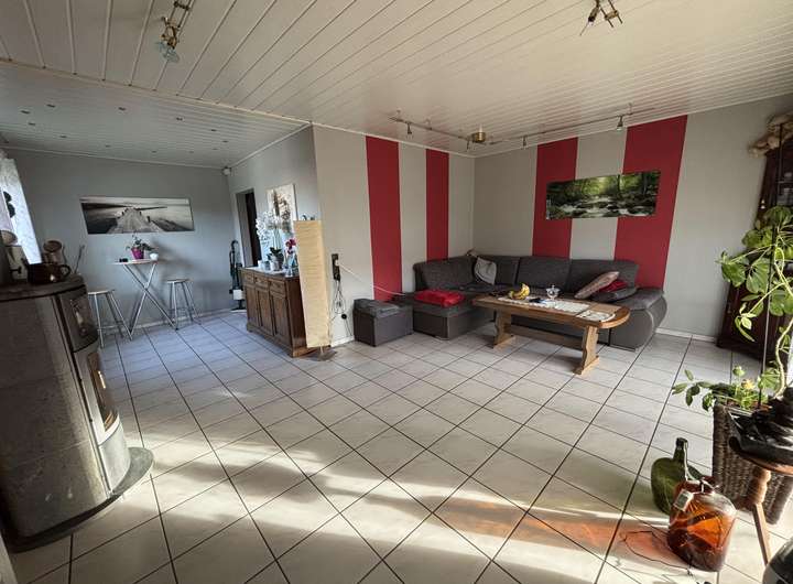 Das Erdgeschoss verfügt über eine Fläche von ca. 51 m² und umfasst ein Gäste-WC, eine separate Küche sowie einen großzügigen Wohn- und Essbereich. Ein Kaminofen sorgt hier für eine angenehme Wohnatmosphäre. Vom Wohnbereich aus besteht ein direkter Zugang zur Terrasse und in den großen Garten, wodurch Innen- und Außenbereich harmonisch miteinander verbunden sind. Im Obergeschoss mit ca. 50 m² befinden sich zwei weitere Zimmer sowie ein Schlafzimmer mit Balkon. Ein Tageslichtbad ergänzt diese Etage und bietet ausreichend Platz für die Bedürfnisse einer Familie.