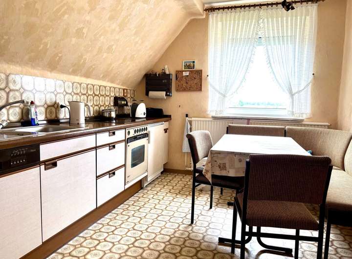 Insgesamt verfügt die Bebauung über acht Räume und ca. 200 m² Wohn- und Nutzfläche.