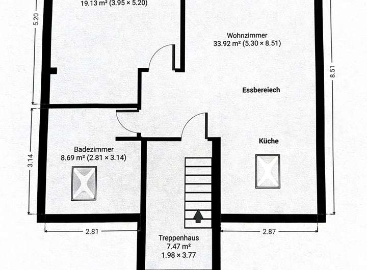 Alle drei Wohneinheiten sind dauerhaft vermietet und sorgen für planbare, stabile Mieteinnahmen in Höhe von 2.560€ netto kalt monatlich bzw. 30.720 € jährlich (inkl. Vermietung eines Schuppens). Die Mieterstruktur ist solide, die Mietverhältnisse sind langfristig angelegt-