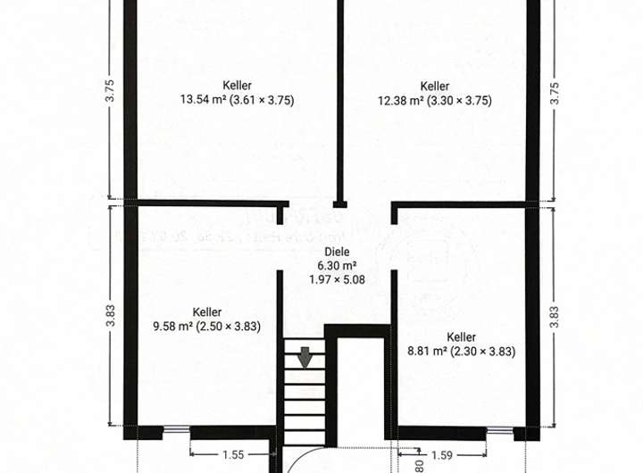 Die Immobilie ist komplett unterkellert. Der Wasch-/ Trockenraum und der Hof werden gemeinschaftlich genutzt.