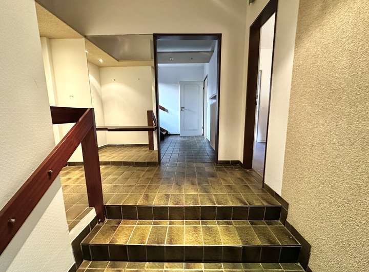 Im Erdgeschoss empfängt Sie ein praktischer Eingangsbereich mit Gäste-WC. Die großzügige Küche ist mit einer Einbauküche ausgestattet und bietet ausreichend Platz für einen kleinen Essbereich. Herzstück dieser Ebene ist das helle Wohnzimmer mit zeitlosem Stäbchenparkett. Von hier aus gelangen Sie direkt auf die Terrasse mit Markise sowie in den liebevoll angelegten Garten, der durch die Endlage besonders viel Privatsphäre bietet.