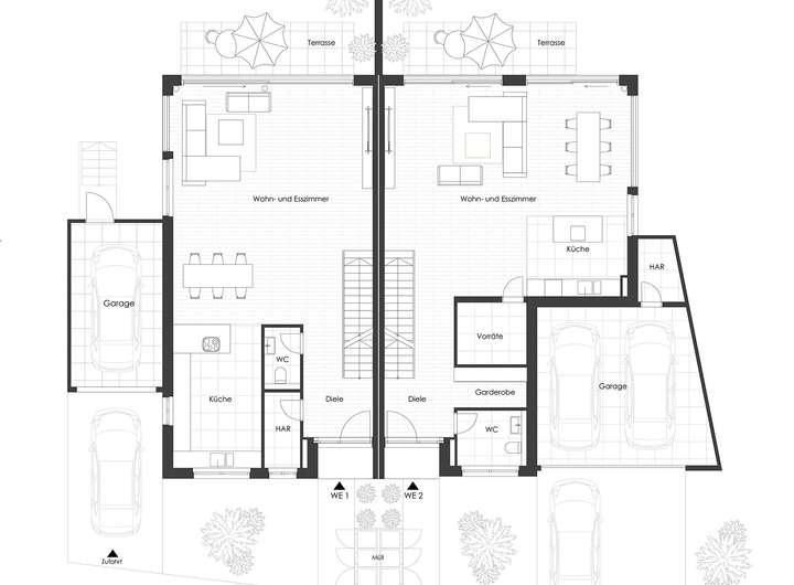 Neubau Doppelhaushälfte im Bauhaus- Stil – geschlossener Rohbau zum Selbstausbau