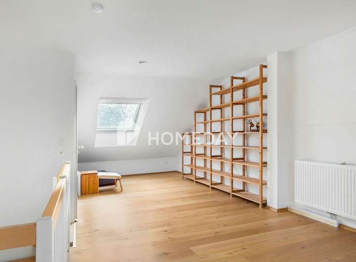 Im Ober- und Dachgeschoss stehen mehrere flexibel nutzbare Räume zur Verfügung, die sich ideal als Schlafzimmer, Kinderzimmer oder Homeoffice eignen. Das Badezimmer ist hell gestaltet und bietet modernen Komfort. Die gesamte Immobilie zeichnet sich durch eine klare, zeitgemäße Architektur und hochwertige Materialien aus, die den gepflegten Gesamteindruck unterstreichen.