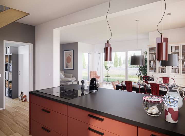 Dein zukünftiges Zuhause wird mit vielen hochwertigen Extras ausgestattet, die deinen Wohnkomfort maximieren. Die Traumküche von Living Haus wird individuell an deinen Grundriss angepasst und bietet modernste Technik sowie clevere Stauraumlösungen. Das Zuhause-Paket beinhaltet eine hochwertige Grundausstattung mit stilvollen Böden, edlen Türen und modernen Sanitäranlagen. Mit dem I-KON-System wird dein Haus nicht nur energieeffizient, sondern auch nachhaltig gestaltet. Das Living Haus Bau-Cockpit ermöglicht dir eine lückenlose Kontrolle über dein Bauprojekt - alles digital und einfach zugänglich. Mit dem DIY-Ausbau-Coaching erhältst du wertvolle Tipps von Experten, um den Innenausbau selbst in die Hand zu nehmen. Und das Zuhause-Darlehen bietet dir finanzielle Unterstützung zu besonders günstigen Konditionen. Mach dein Fertighaus zu deinem persönlichen Traumhaus, ganz nach deinen Vorstellungen!
