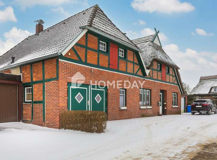 Die Immobilie befindet sich in der Gemeinde Berne im Landkreis Wesermarsch und liegt in einem ruhigen Wohnumfeld, das durch seine direkte Nähe zur Weser geprägt ist. Wie der Charakter der Umgebung bereits vermuten lässt, befindet sich das Haus unmittelbar am Deich, der nicht nur Schutz bietet, sondern zugleich als Naherholungsraum dient. Spaziergänge entlang des Wassers, weite Blicke über die Flusslandschaft und ein insgesamt entschleunigtes Lebensgefühl gehören hier ganz selbstverständlich dazu.