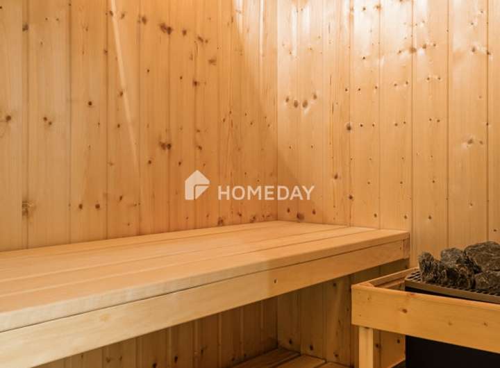 Ein besonderes Ausstattungsmerkmal ist die integrierte Sauna, die den Wohnkomfort deutlich erweitert und einen privaten Rückzugsort schafft. Beheizt wird das Haus über eine Zentralheizung mit Fußbodenheizung, installiert im Jahr 2008 und gepflegt erhalten. %BREAK%